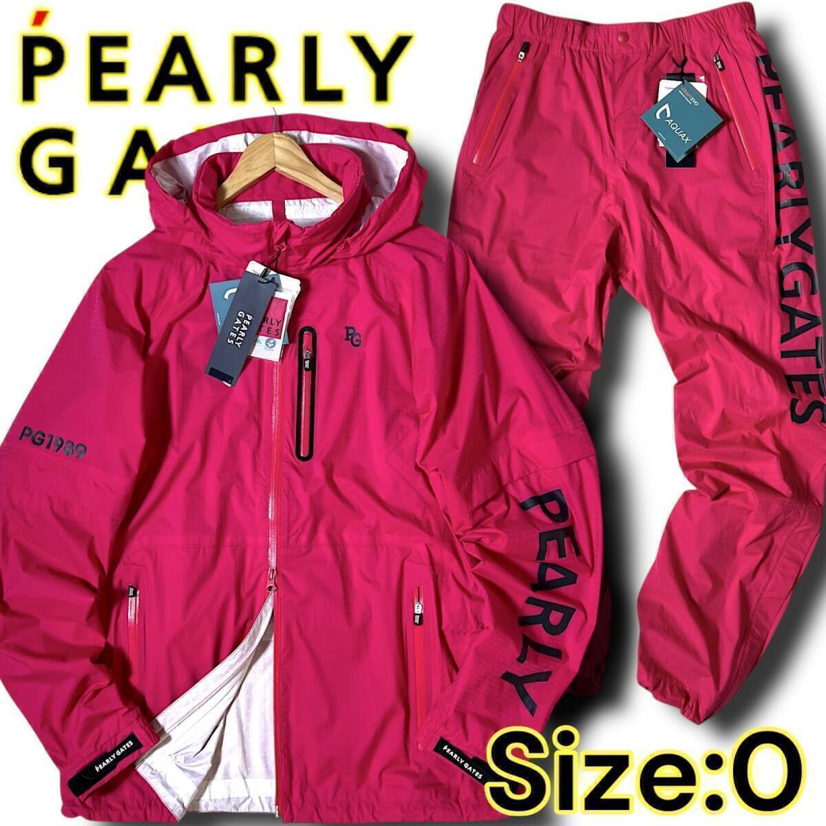 > ◆新品 PEARLY GATES パーリーゲイツ 定6.6万 撥水防水透湿防風 ビッグロゴ レイン ジャケット パンツ セットアップ 0 S 上下セット C432