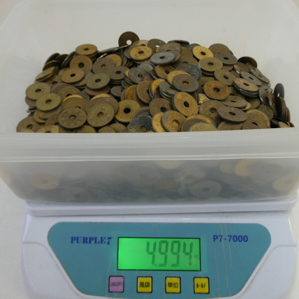 - ●佐⑩98-⑤ 5円玉 4.994kg 5円玉 大量 まとめ売り 5kg弱 現行円 お宝さがし 重量感たっぷり 手芸用 日本円 コイン 硬貨 大量