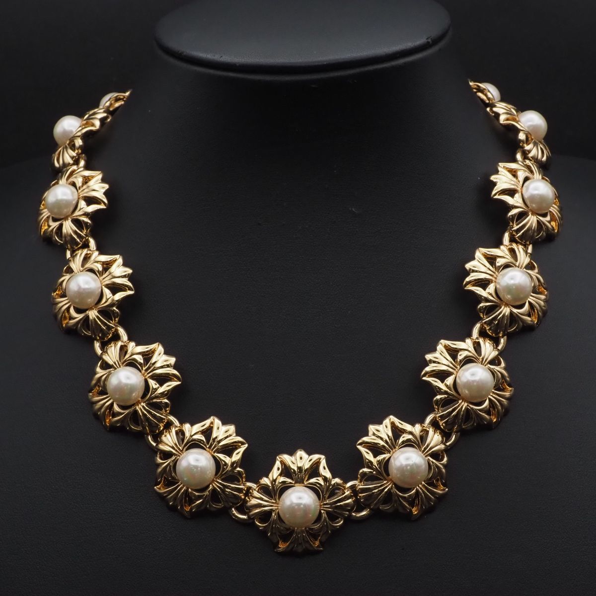 - G294 NINA RICH ニナリッチ ネックレス フェイクパール ゴールド デザイン コスチュームジュエリー
