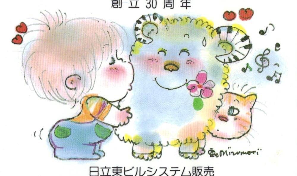 - ★水森亜土 イラスト 日立東ビルシステム販売 創立30周年★テレカ50度数未使用de_135
