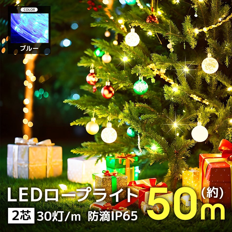 - イルミネーション LED ライト 屋外 クリスマス 計1500球 50m カット可能 防水 チューブライト イルミネーションライト 電飾 ブルー