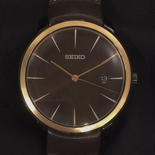 - セイコー ムービングデザイン デイト 自動巻き 腕時計 6R15-00N0 ブラウン文字盤 稼働品 シリアル入り 純正ベルト