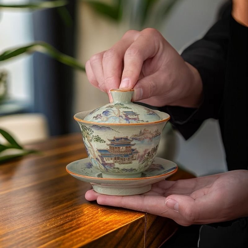 - 中国茶器 蓋碗 汝窯 開片 茶杯 茶碗 茶道具 お茶碗 中国茶道 中国工夫茶碗 陶瓷茶具 簡易包装 郵便発送 zh1038