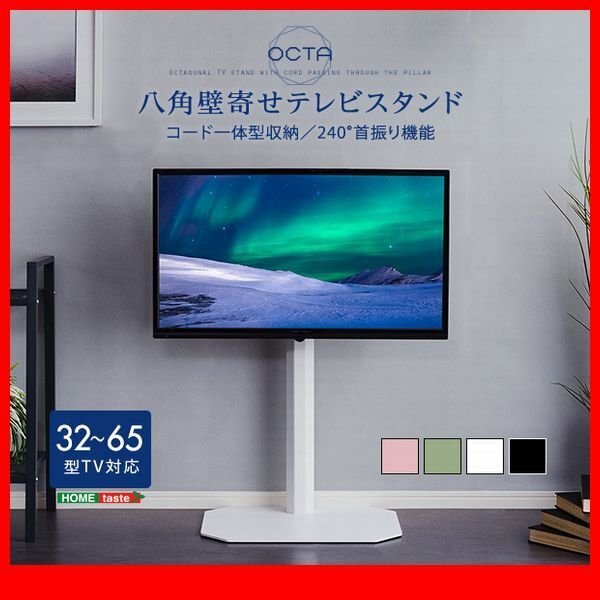 - テレビ台★新品/美しいフォルムの八角壁寄せテレビスタンド ロー/32~65インチ/コーナー対応 スイング 首振り機能/黒 緑 ピンク 白/zz