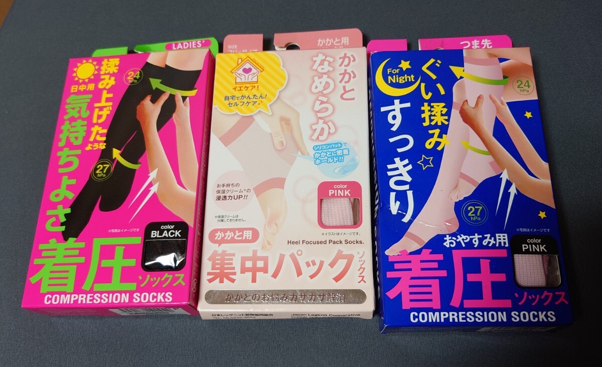 - 【新品未開封】着圧ソックス 日中用 おやすみ用 かかとなめらか集中パックソックス 3足セット