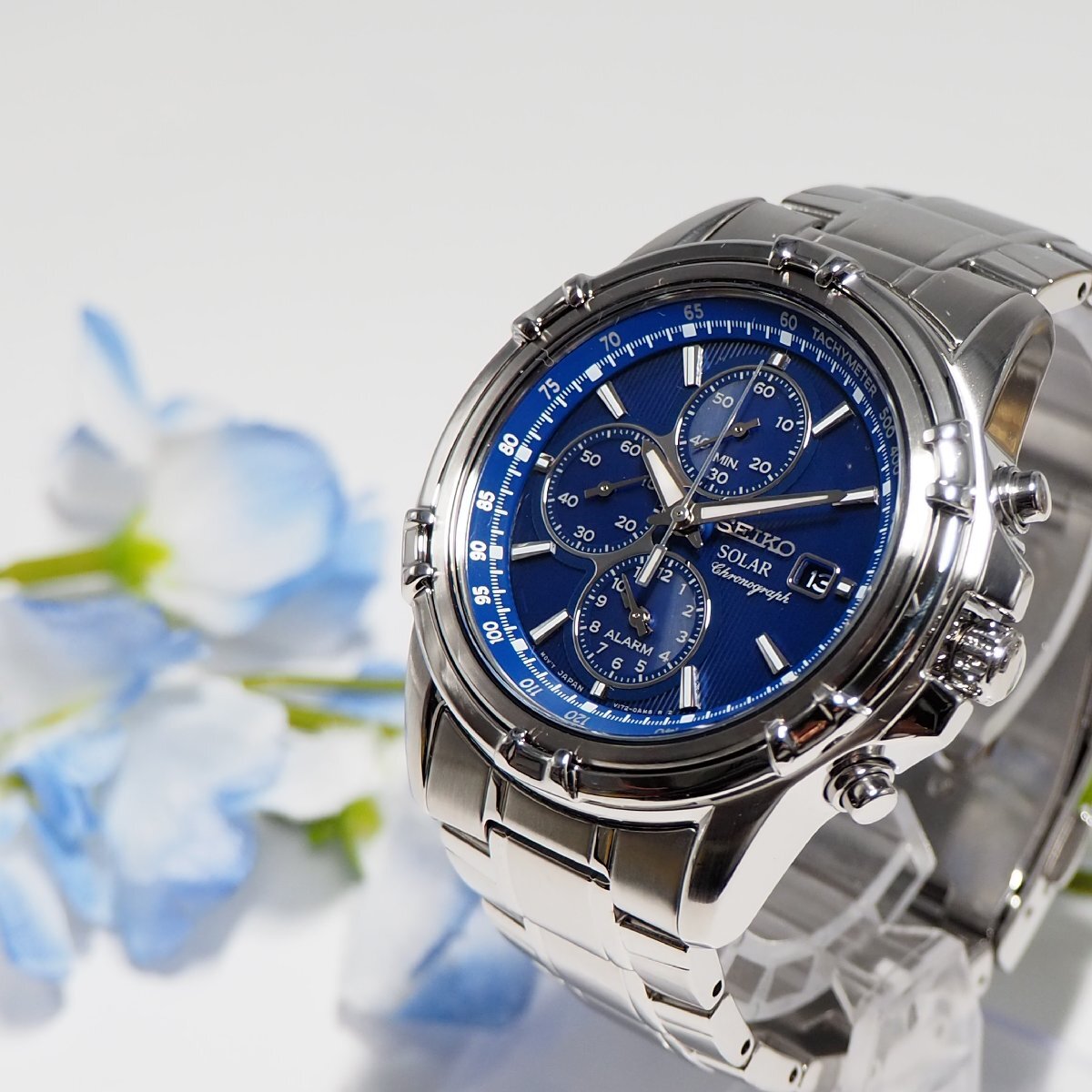 ★★★★ 美品 セイコー SEIKO 100M ソーラー クロノグラフ デイト メンズ 腕時計 H362 中古★★★★