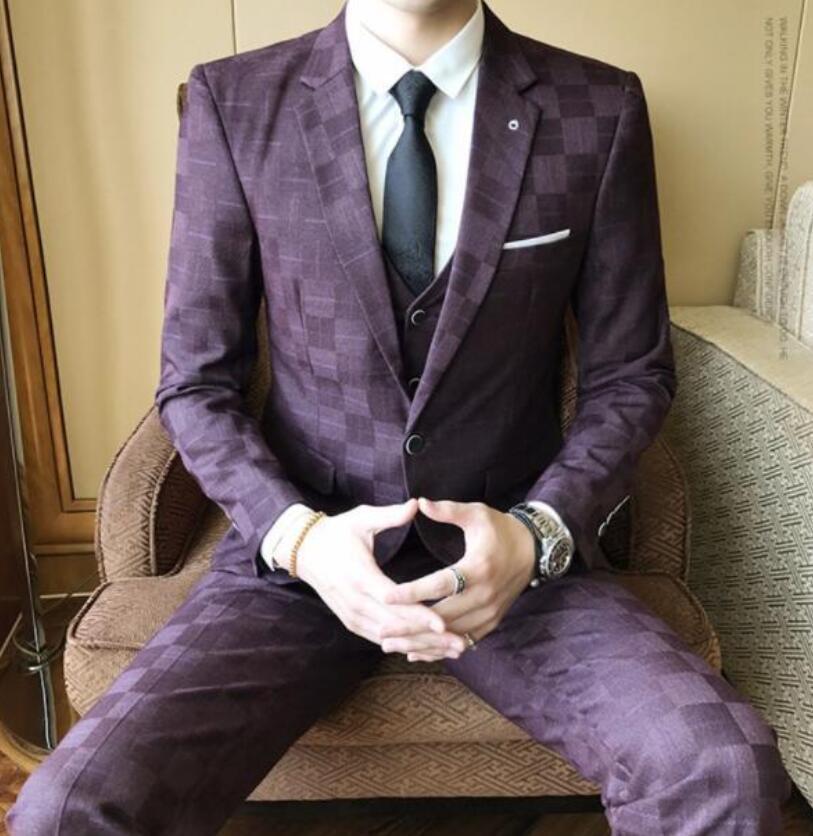 > メンズ ビジネススーツ スーツセットアップ 3点セット フォーマルスーツ テーラードジャケット ベスト パンツ 3色選択 パープル M~4XL選択