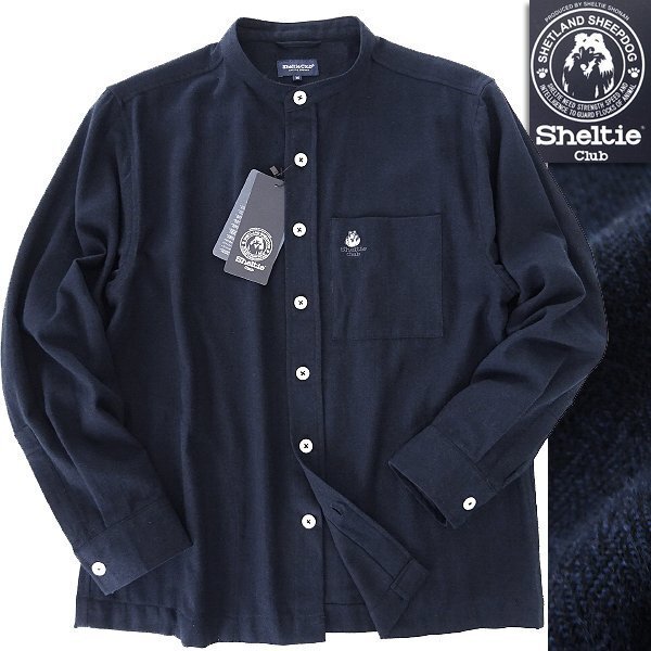- 新品 シェルティークラブ 起毛 ツイル バンドカラー シャツ L 紺 【SH1443224_79_L】 Sheltie Club 秋冬 起毛 羽織り アウター