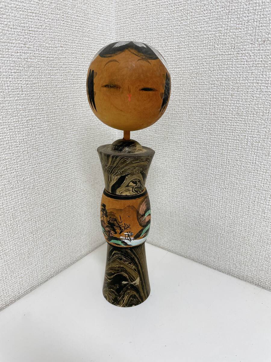 - ☆【木製こけし 高さ 約30cm】日本人形 /アンティーク /コレクション /流線形の模様♪ /A79-191