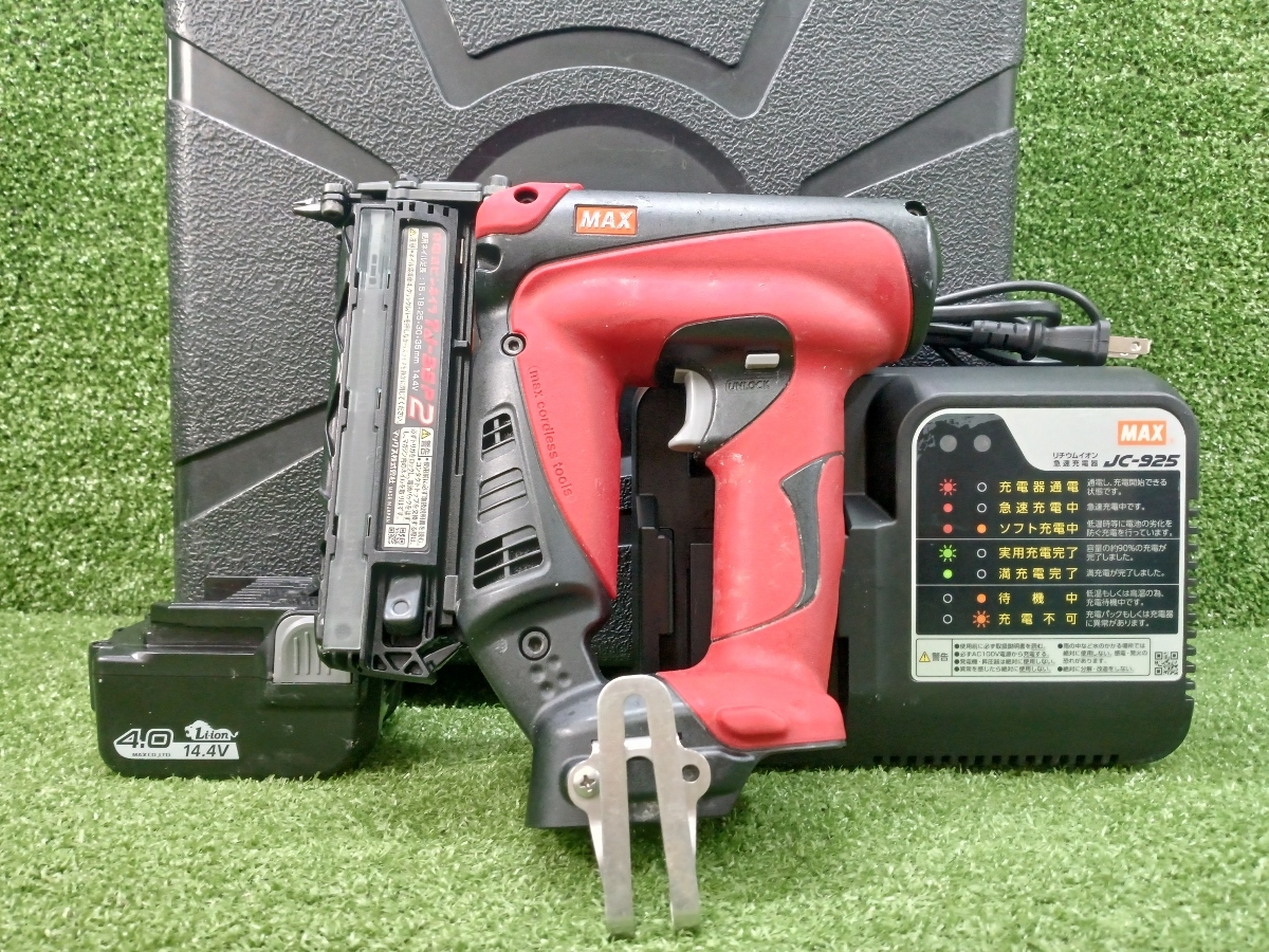 - 中古 MAX マックス 14.4v 充電式 ピンネイラ TJ-35P2-BC/40A + 4.0Ahバッテリー 充電器 付