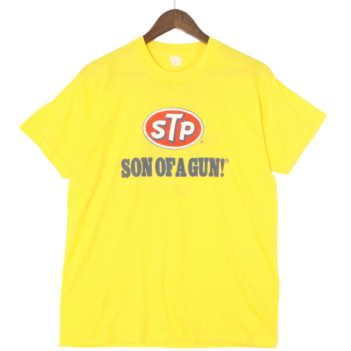- 80年代 USA製 STP 半袖Tシャツ Son of a Gun! 企業ロゴ イエロー(メンズ L)中古 古着 A5087