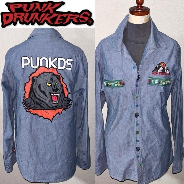 > 即落送料無料 美品 PUNK DRUNKERS パンク ドランカーズ 長袖 シャツ L ストリート スケーター ロック アメカジ ワーク ミリタリー トップス