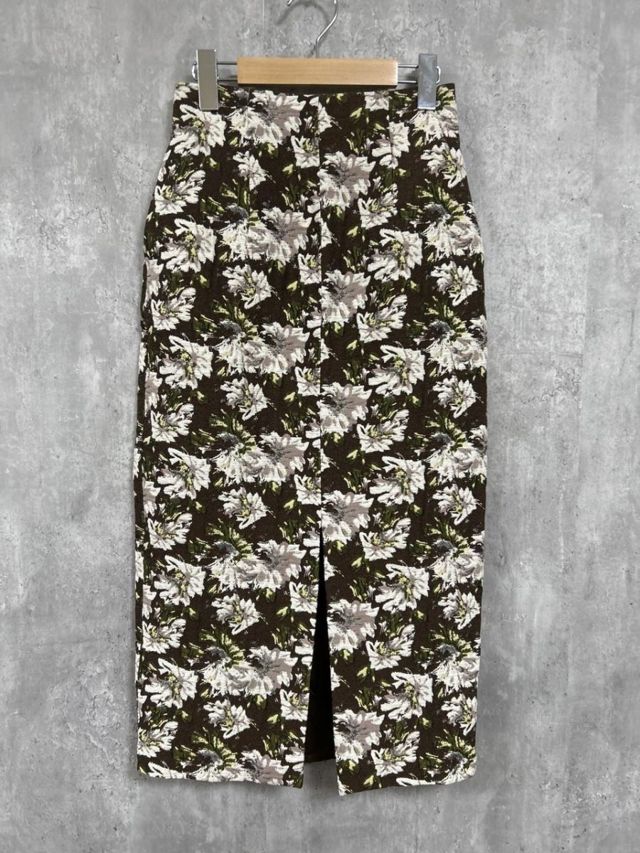 > LAGUNAMOON ラグナムーン 花柄 フラワージャガードタイトスカート タイト スカート sizeS/茶 ◇■ レディース