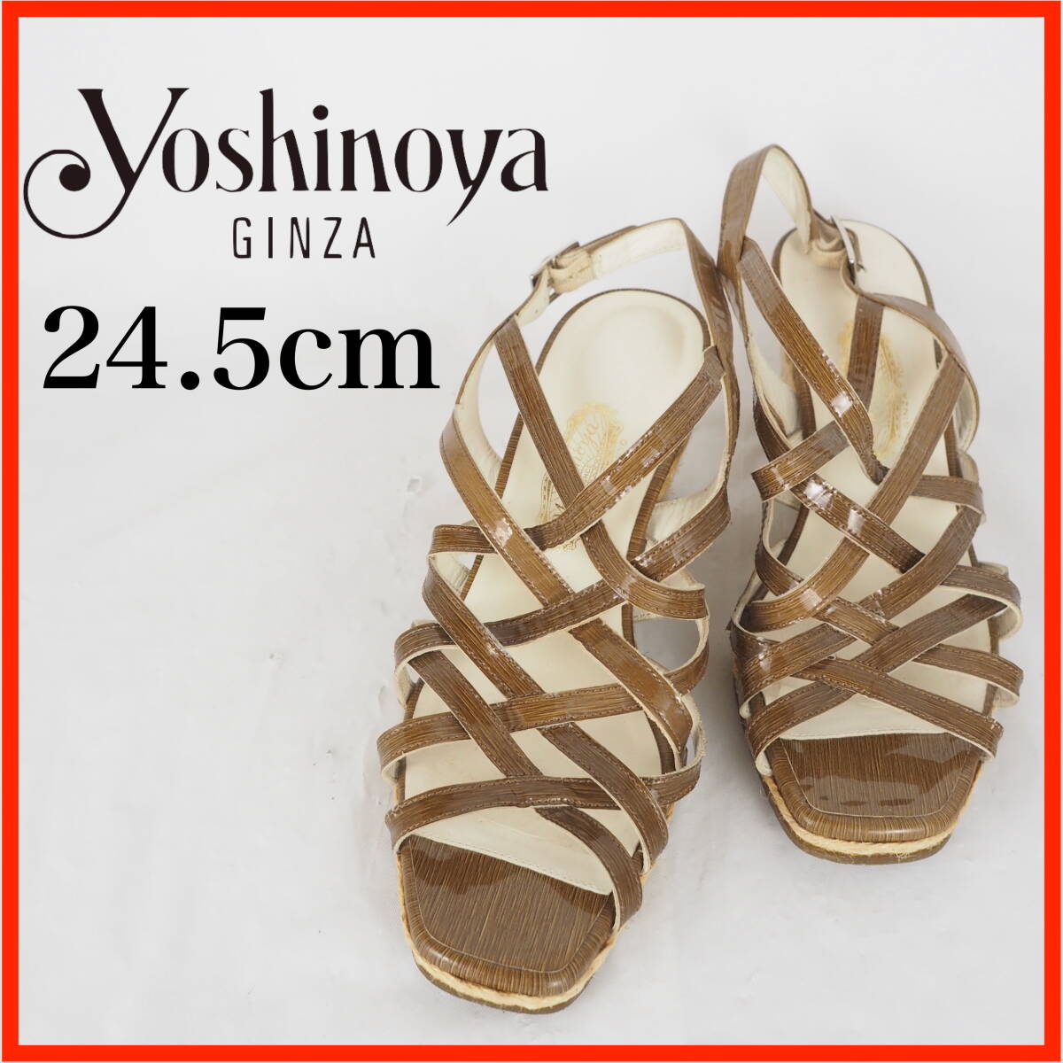 - OK6154*GINZA yoshinoya*銀座ヨシノヤ*レディースサンダル*24.5cm*エナメル茶系