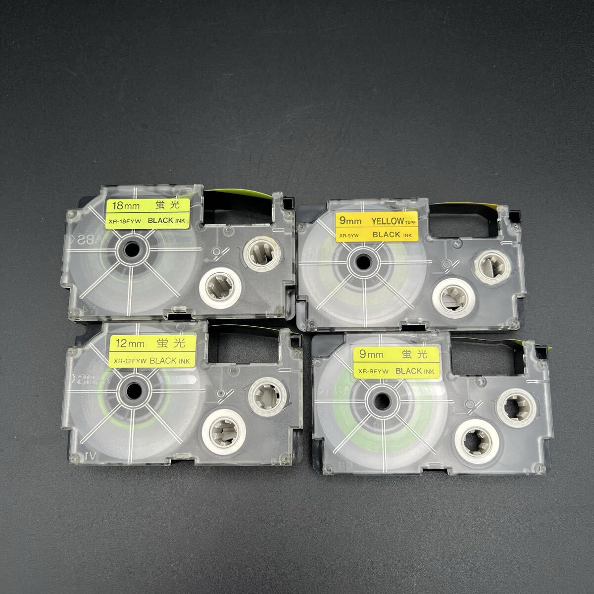 > カシオ ネームランド テープカートリッジ 中古品4点 黄テープ 黒文字 蛍光色 XR-18FYW 12FYW 9FYW 9YW ラベルライター インク