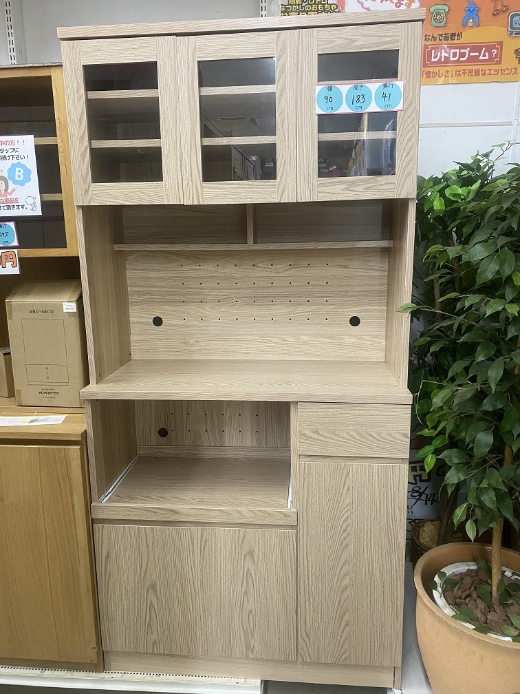 - 【中古品】ベルーナ ウッド調 キッチンボード 食器棚 ○YR-19018○