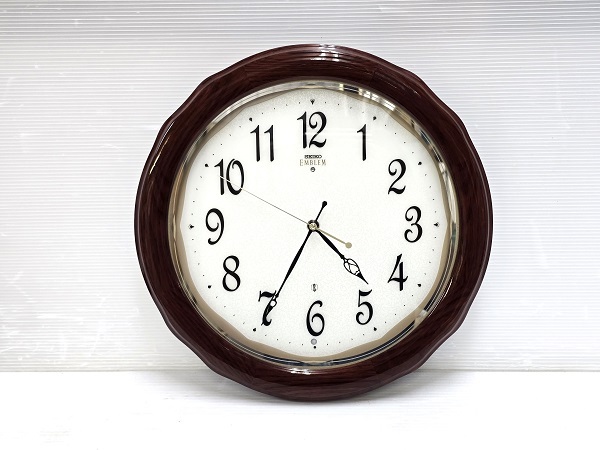 > 【中古品】 セイコー SEIKO エムブレム 電波掛け時計 HS521B 天然木枠仕様 静音 ナチュラル系 インテリアに ○YR-19152○