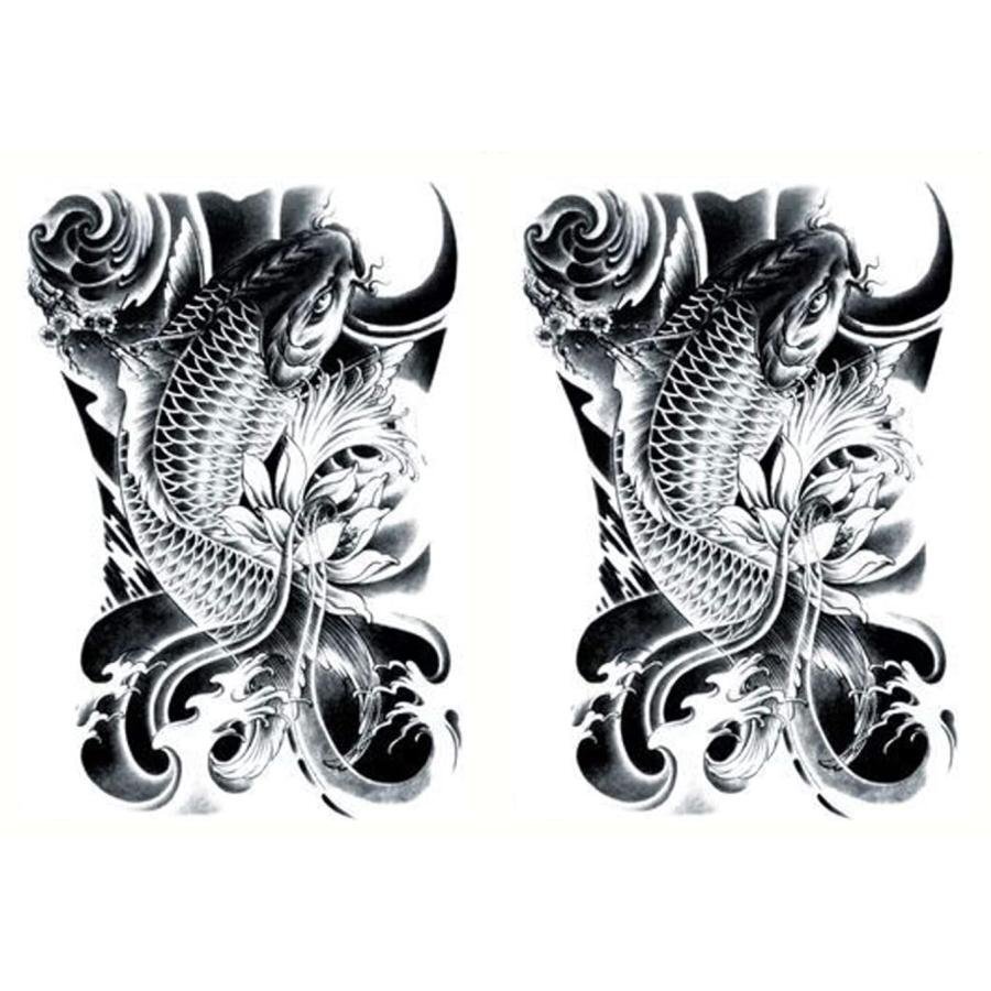 - 【タトゥーシール】★鯉 2枚セット 和柄 フェイクタトゥー 12cm×18.5cm 腕 脚 刺青シール リアル和彫 防水・耐久性あり! (W087 ×2)