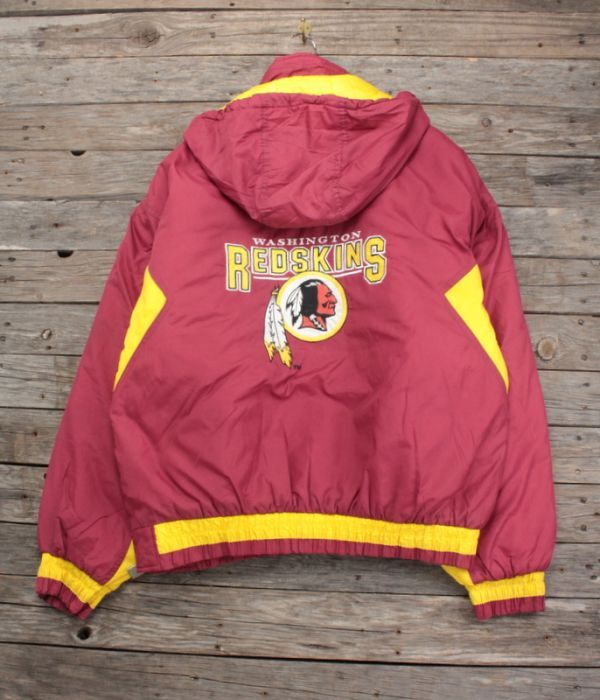 - 90’s CHALKLINE製 レッドスキンズ 中綿 プルオーバー ナイロンJKT エンジ×黄 表L