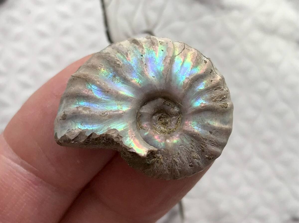 - マダガスカル産 遊色虹色アンモナイト-青(クリオニセラス)格安 8g 3.0cmピンク青紫緑発色マダガスカリエンス 小個体