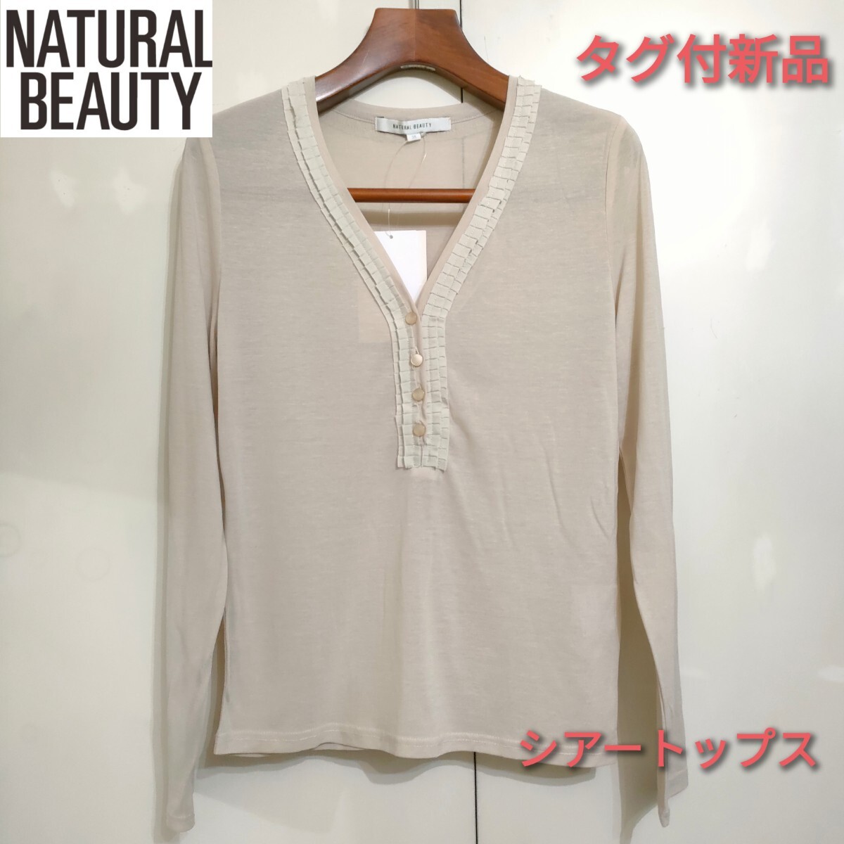 - 【タグ付新品】NATURAL BEAUTY シアートップス 長袖 ベージュ 38サイズ ナチュラルビューティー 透け感 カットソー