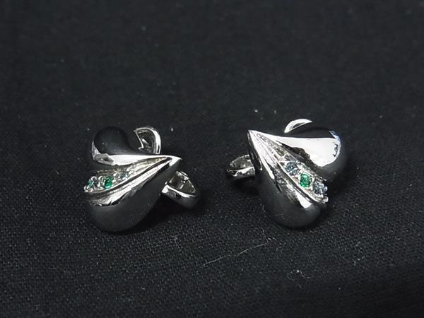 > ■美品■ NINA RICCI ニナリッチ ラインストーン カラーストーン ハート イヤリング アクセサリー シルバー系×グリーン系 DK0125