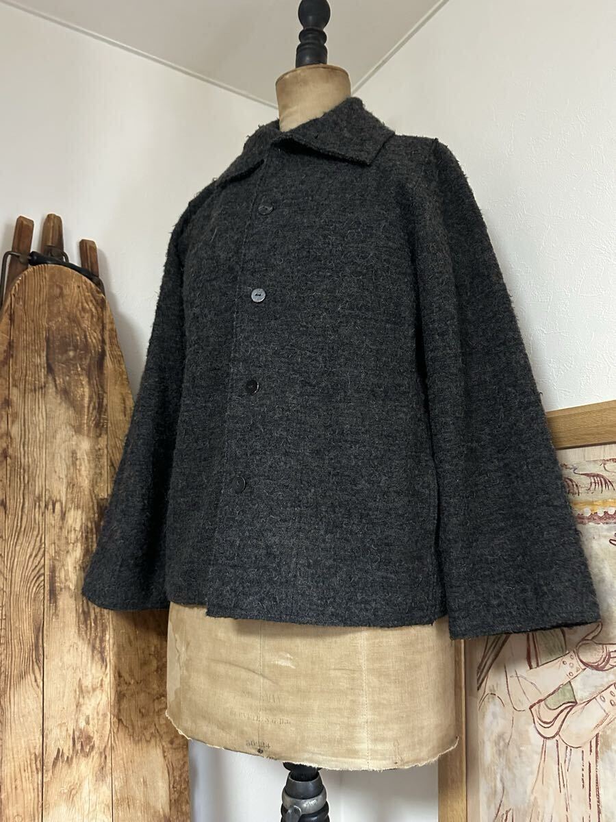 > ヨーガンレール 美品 ゴッドランドウール ジャケット ゆったりシルエット ナチュラル 天然 黒の衝撃 ヨウジ 川久保 アンティーク 蚤の市
