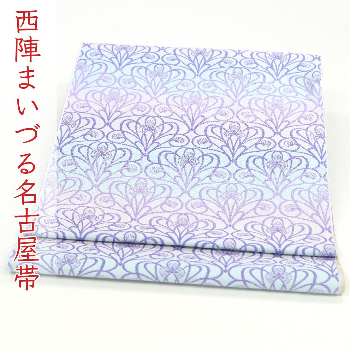 > 和遊館 即決ona4573 西陣 まいづる 全通織 優巴 九寸 名古屋帯 アールヌーボー花文 お仕立て付き