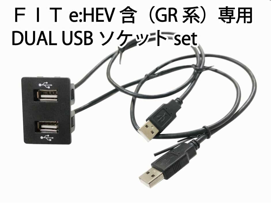 > ホンダ FIT フィット (e:HEV含) DUAL USBソケット ケーブルset GR系 FIT4 JAZZ (USBソケット パネル 社外ナビ ミラーリング 充電 通信等)