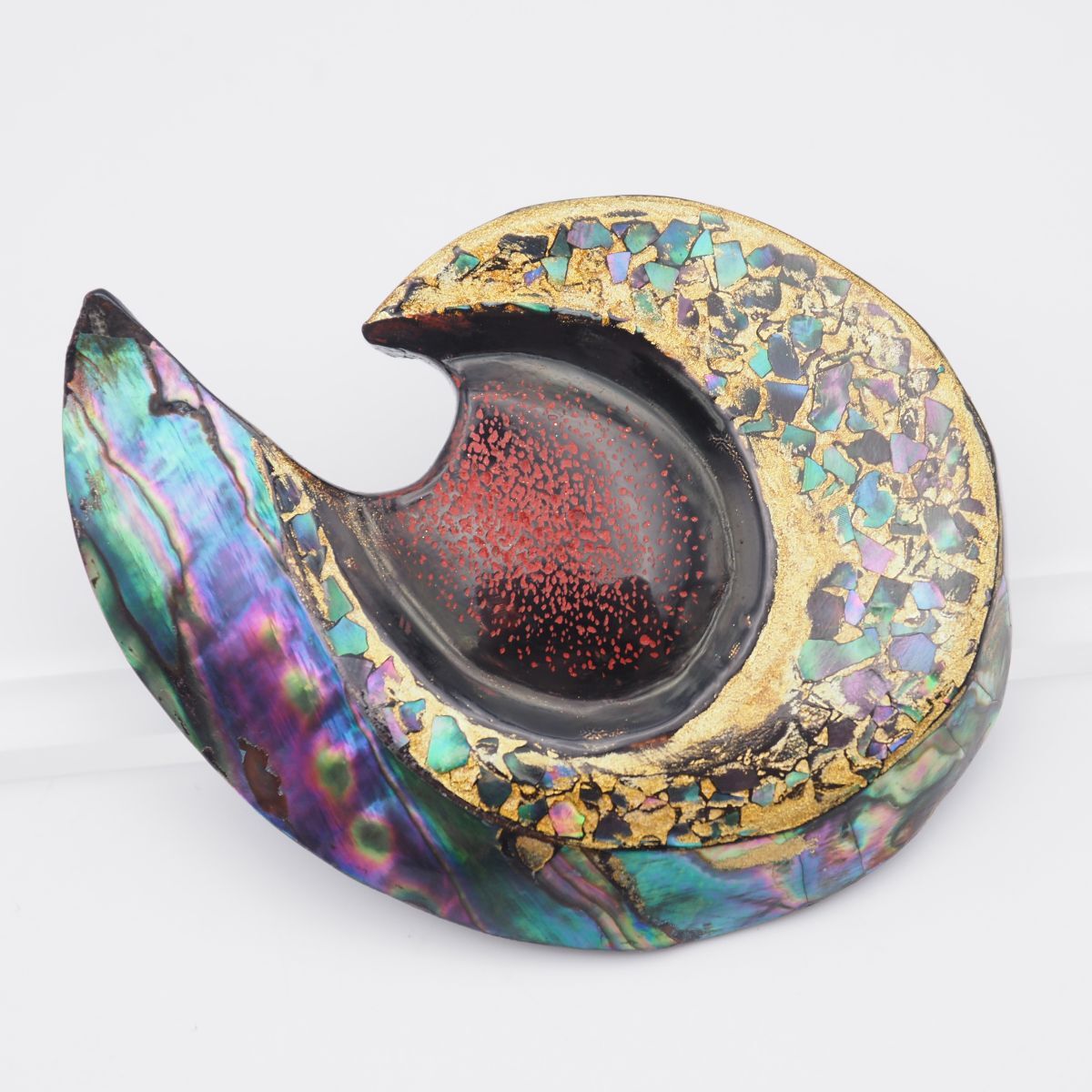 - G098 アンティーク ブローチ 漆塗り 螺鈿細工 ゴールド デザイン