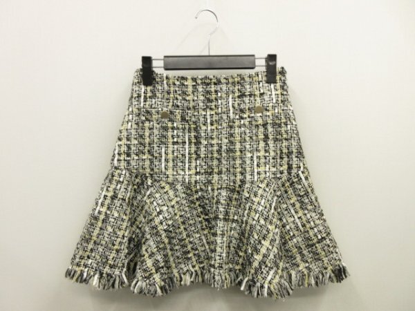 - リリーブラウンLily Brown★ウール混 フリンジツイードフレアスカート◆サイズ1