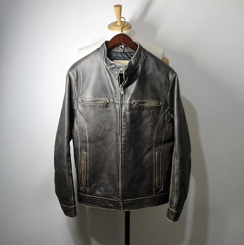 - TK 使用感少 良品 ゲス GUESS 立ち襟 レザーライダースジャケット 裏地 ダイヤ型キルティング M