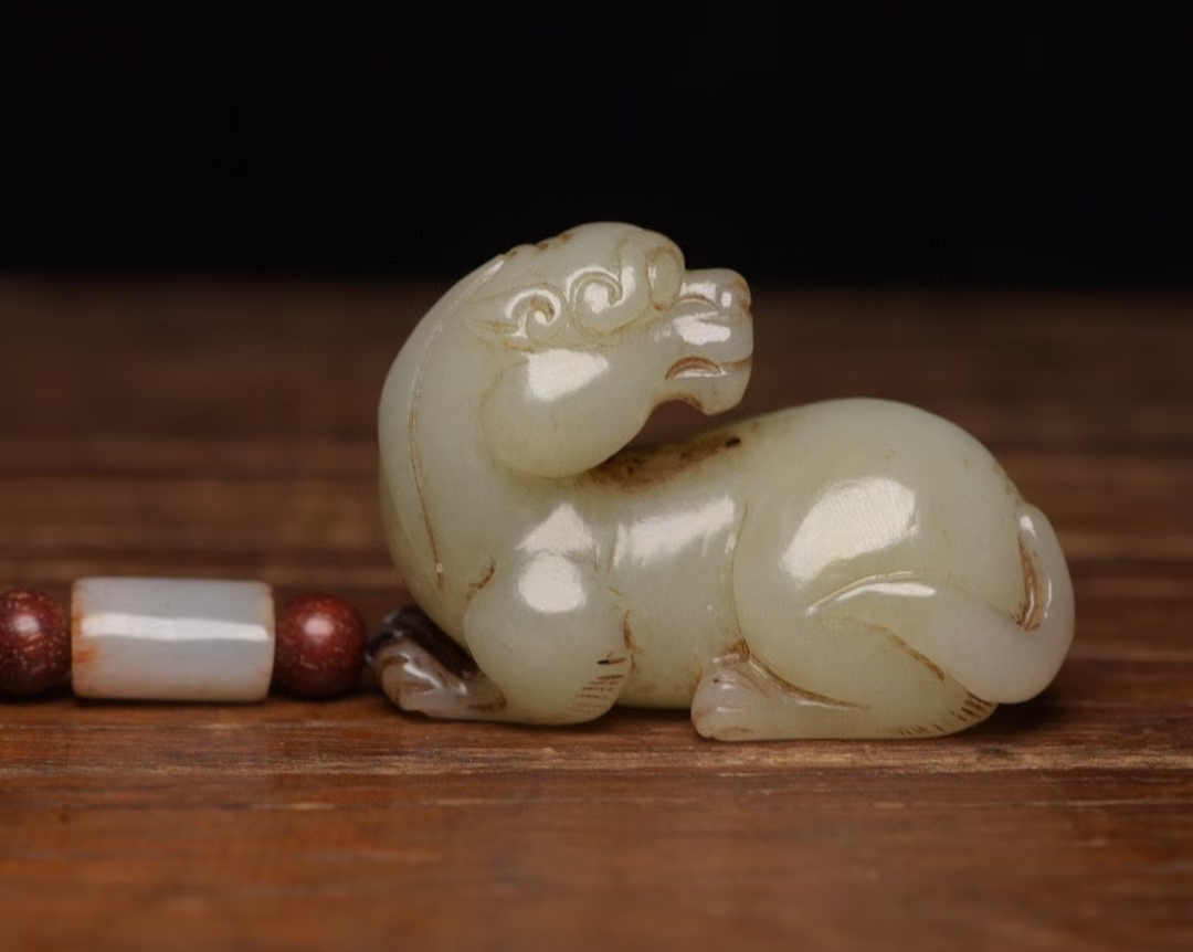 - 【超珍館蔵】和田玉製 細密彫 玉獣 置物 賞物 古賞物 古董品 古美術品 時代物 旧家蔵出 稀少珍蔵品