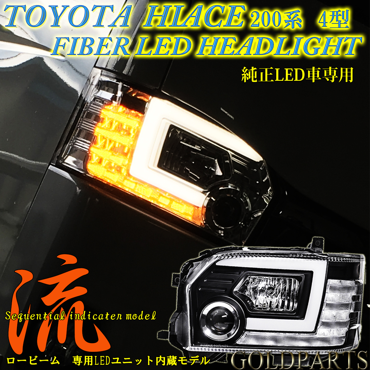 > 【正規品】200系ハイエース 4型~7型 ファイバーLED LEDヘッドライト 流れるウインカー 純正LED車用 スーパーGL 限定
