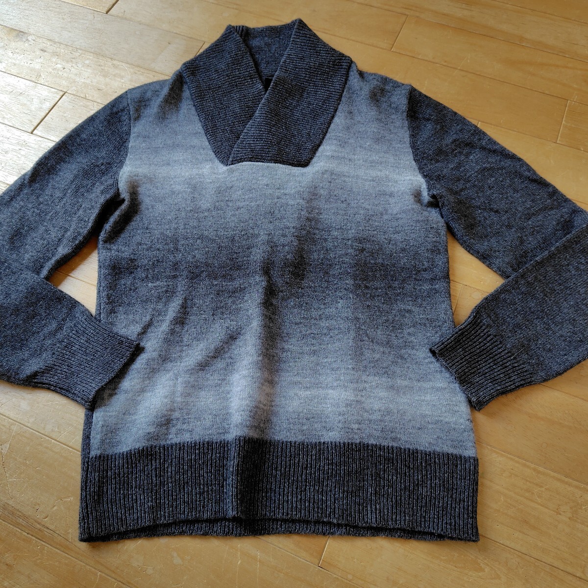 - H & M ウール メンズ長袖ニットセーター グレー系グラデーション170/92A 美品☆