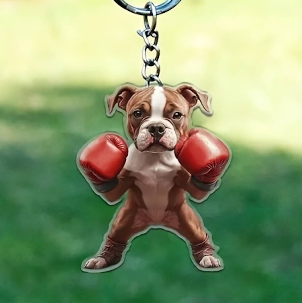 - キーホルダー ボクシングするボクサー犬 アクリル 平面 2D 子犬 イヌ 小さい 5cm キーチェーン かわいい 車 鍵 インテリア いぬ t8947