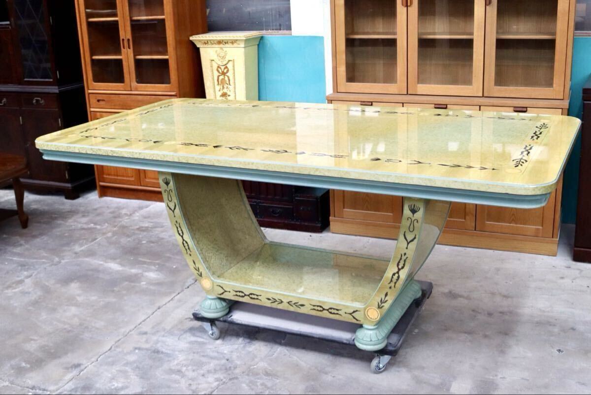 > GMIK478○イタリア製 バーズアイメープル グリーン ダイニングテーブル 食卓テーブル クラシック エレガント 机 店舗什器 ロココ様式 西洋