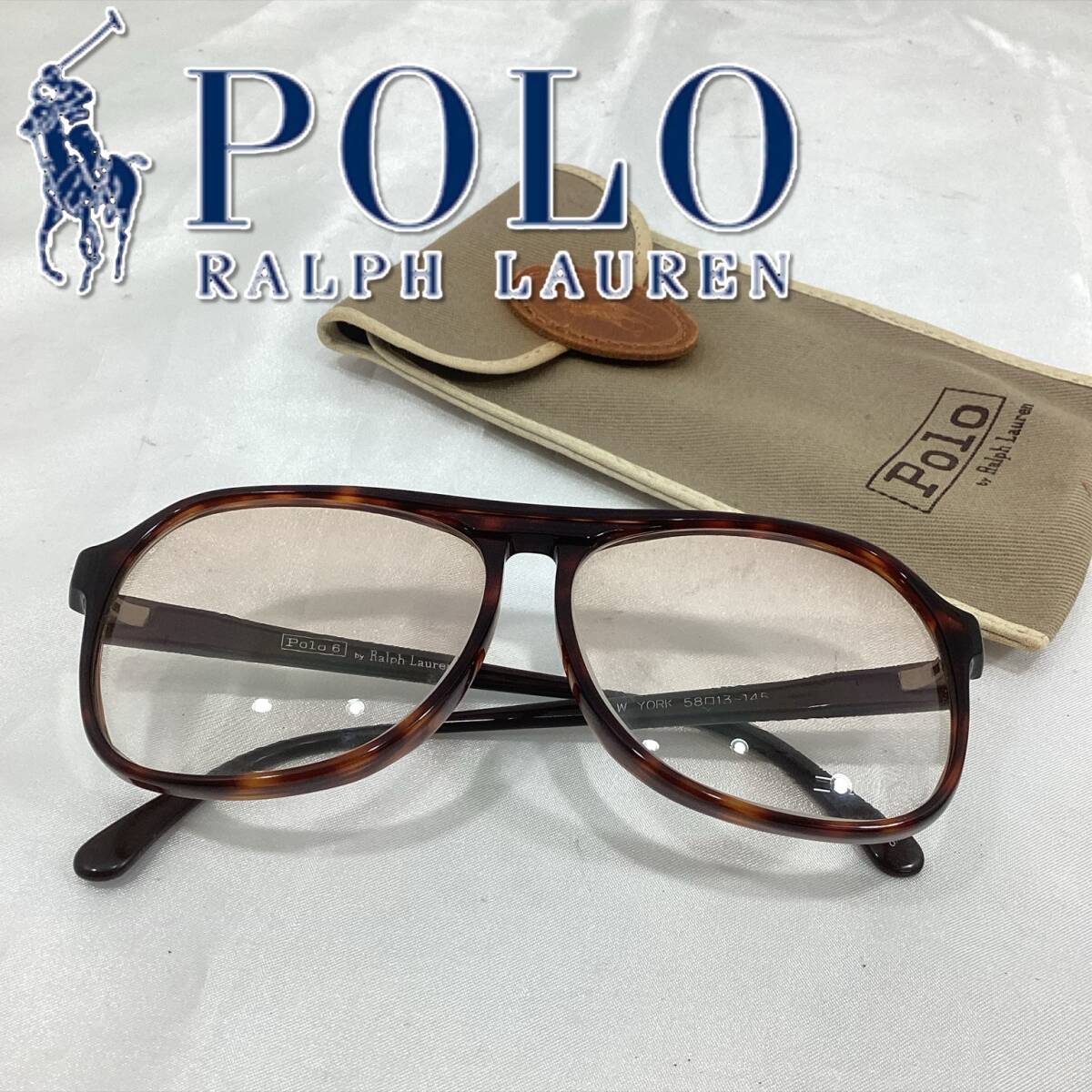 > 【美品】Polo 6 by Ralph Lauren 58-13−145 色付き 拡大鏡 老眼鏡 べっ甲柄 クリアブラウン ケース付 ポロ ラルフローレン 【H1898】
