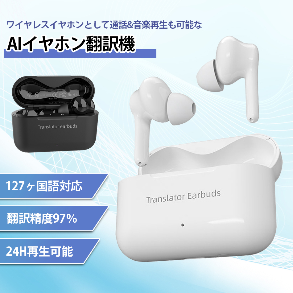 - AIイヤホン翻訳機 翻訳イヤホンM6 AI Bluetoothイヤホン翻訳機127ヶ国語対応 同時通訳 海外旅行 通訳イヤホン通訳観光英語 中国語 日本語