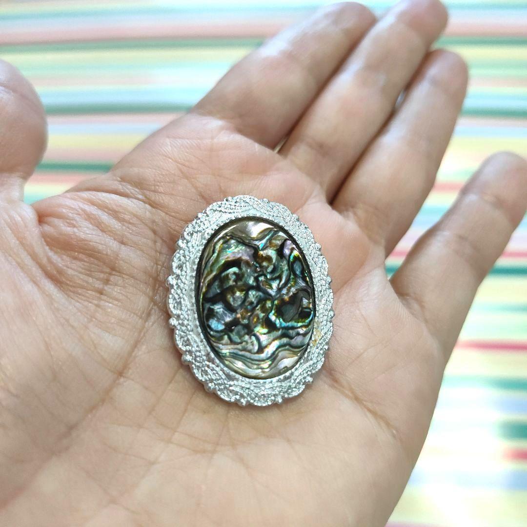 - 玉虫の貝のブローチ 貝の帯どめ 帯留め しっかり上質金具 スカーフ留めにも