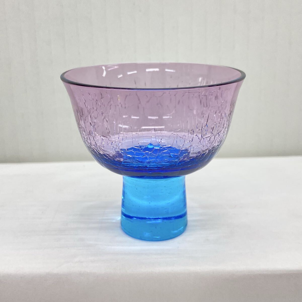 > 741 北一硝子 小樽 グラス 酒器 高台 お猪口 ぐい呑 酒盃 冷酒グラス 高台猪口 ガラス製 クラック 気泡入り 工芸ガラス
