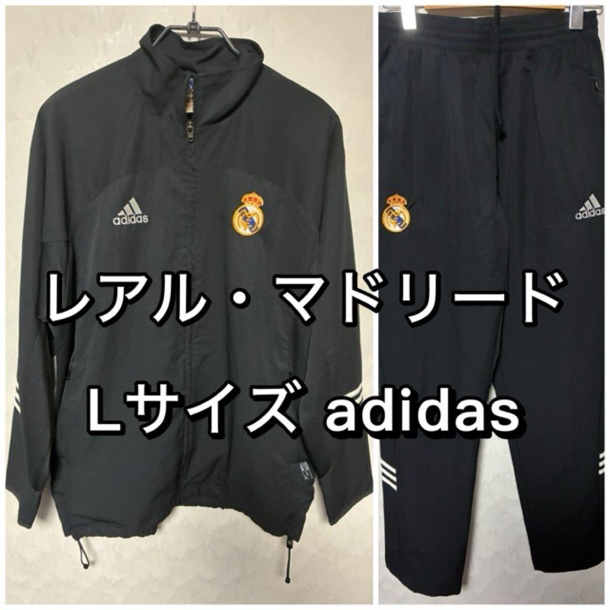 > レアル・マドリード 100周年 セットアップ Lサイズ ナイロンジャケット パンツ ブラック ユニフォーム