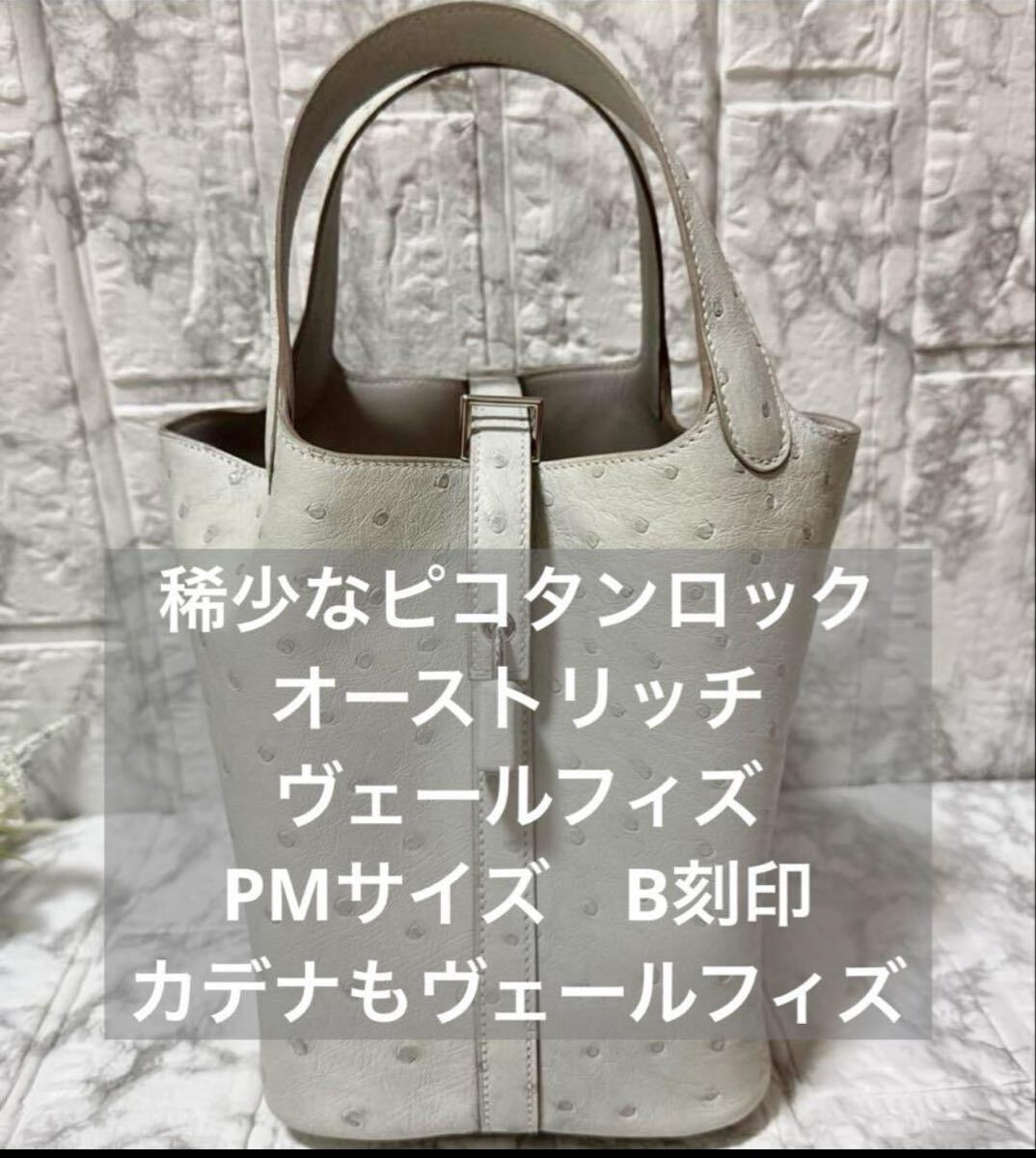 > 稀少幻級 HERMES エルメス ピコタンロック PM オーストリッチ ヴェールフィズ B刻印 極美品 カデナもヴェールフィズ