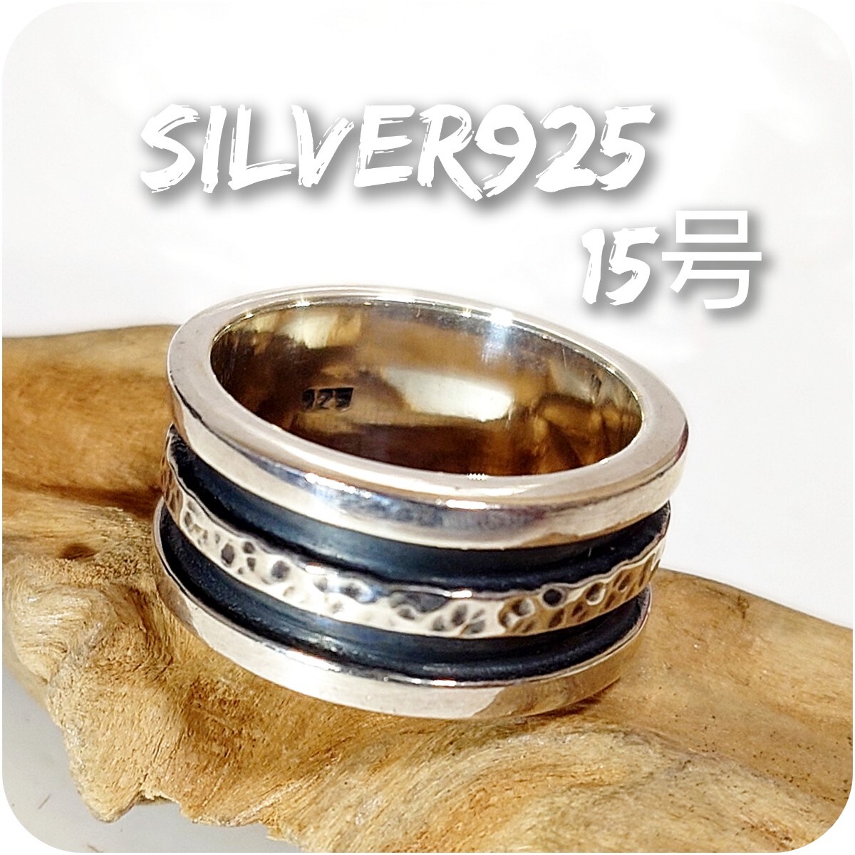 > 1578 SILVER925 ラインリング15号 シルバー925 シンプル ワイド 幅広 タタキ 凹凸 ストライプ 平打ち ヴィンテージ ハンドメイド☆人気☆