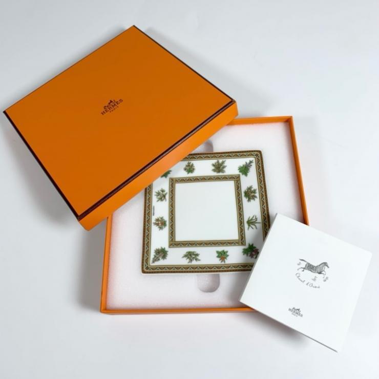 - HERMES エルメス シュヴァルドリアン スクエアN.2 プレート 11×11cm 絵皿 装飾 陶器 食器 保管箱付【希少】