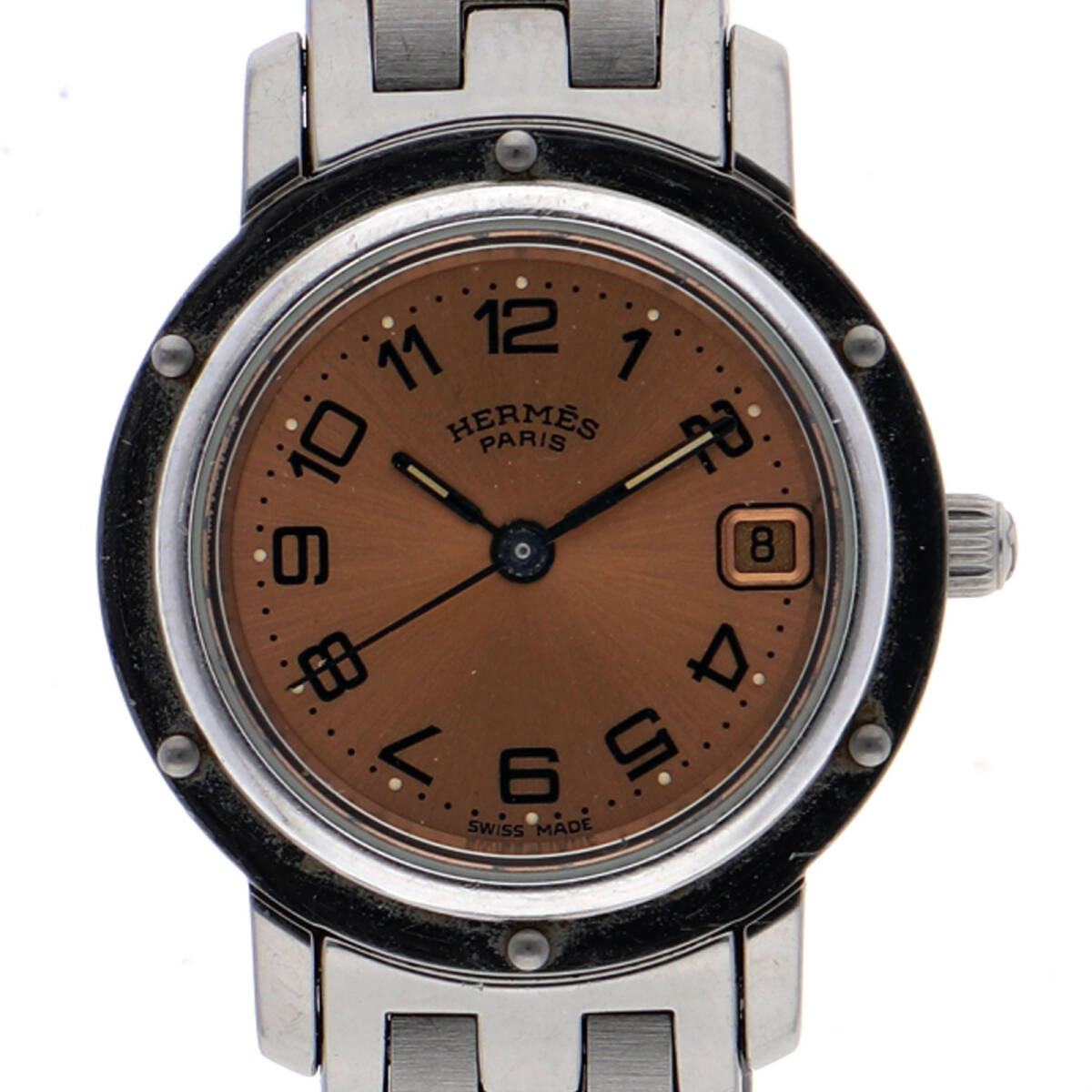 - HERMES エルメス CL4.210 クリッパー オレンジダイヤル SS クオーツ レディース【136192】