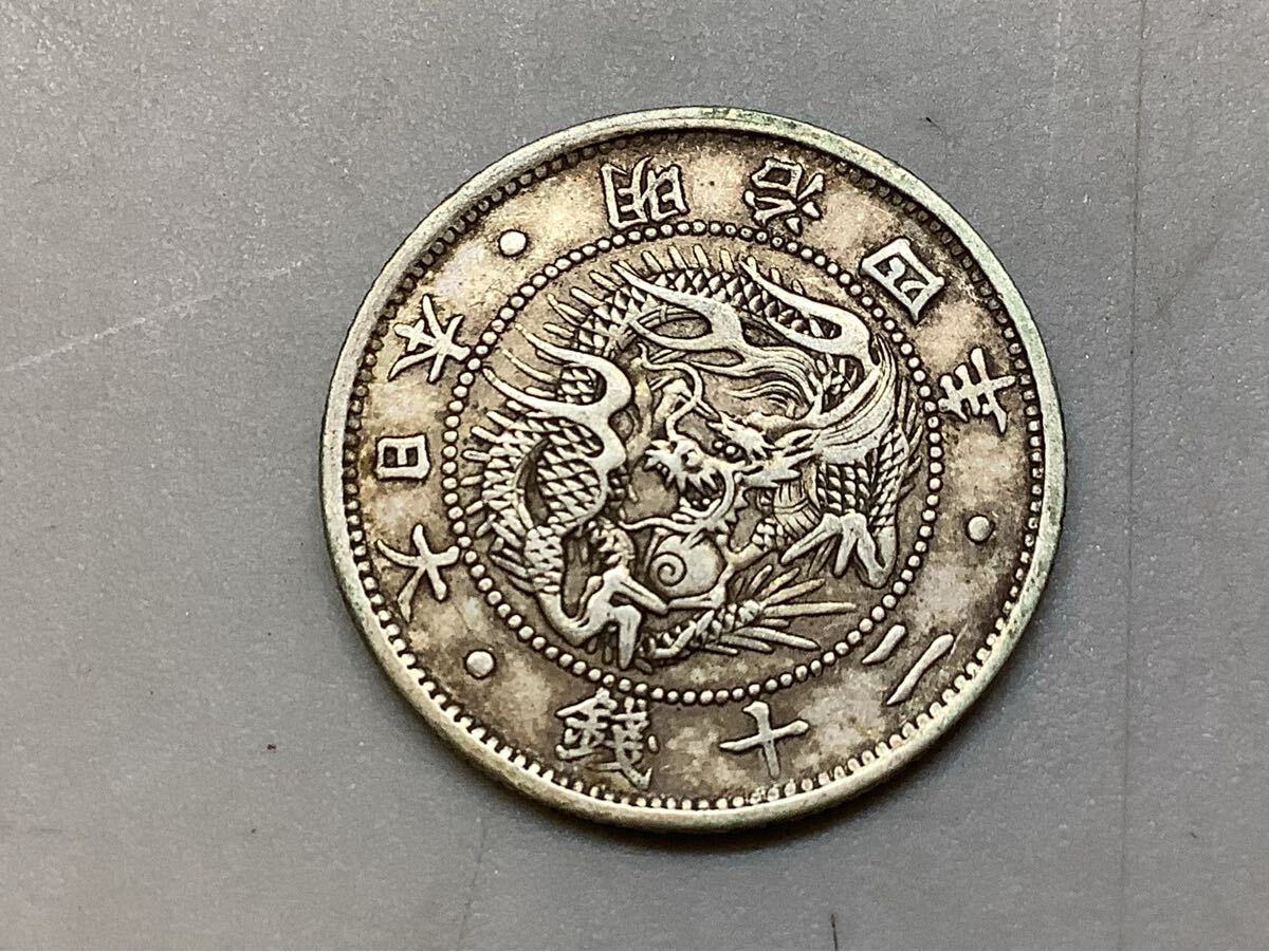 > N21 旭日竜20銭銀貨 特年 明治4年 二十銭 硬貨 20銭 大日本 明治四年 古銭 旭 竜 旧貨幣 日本硬貨 銀貨