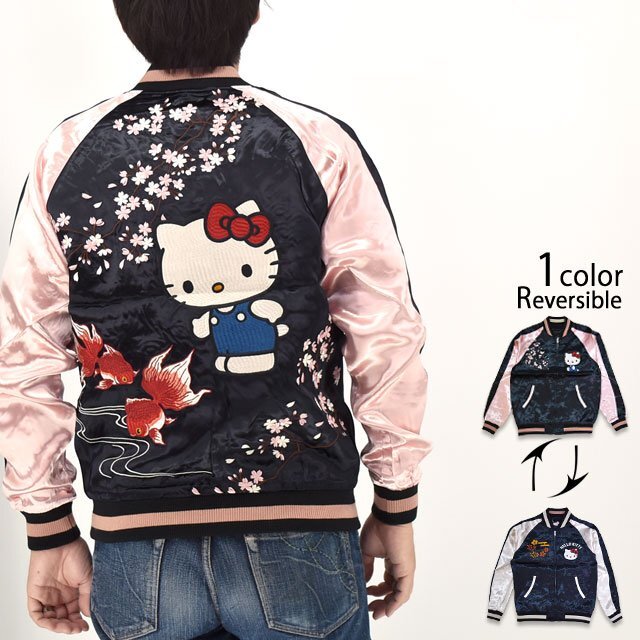 - サンリオ ハローキティ リバーシブルスカジャン◆サクラスタイルセレクション ブラック×ピンク XLサイズ SRO-2503 ハローキティ 刺繍