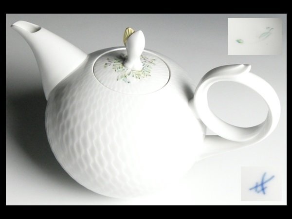 > 最高峰ペインター 石井逸郎 絵付 希少作品 マイセン Meissen ハンドペイント フラワー 花絵 サイン入り 波の戯れ 大型 ポット n378