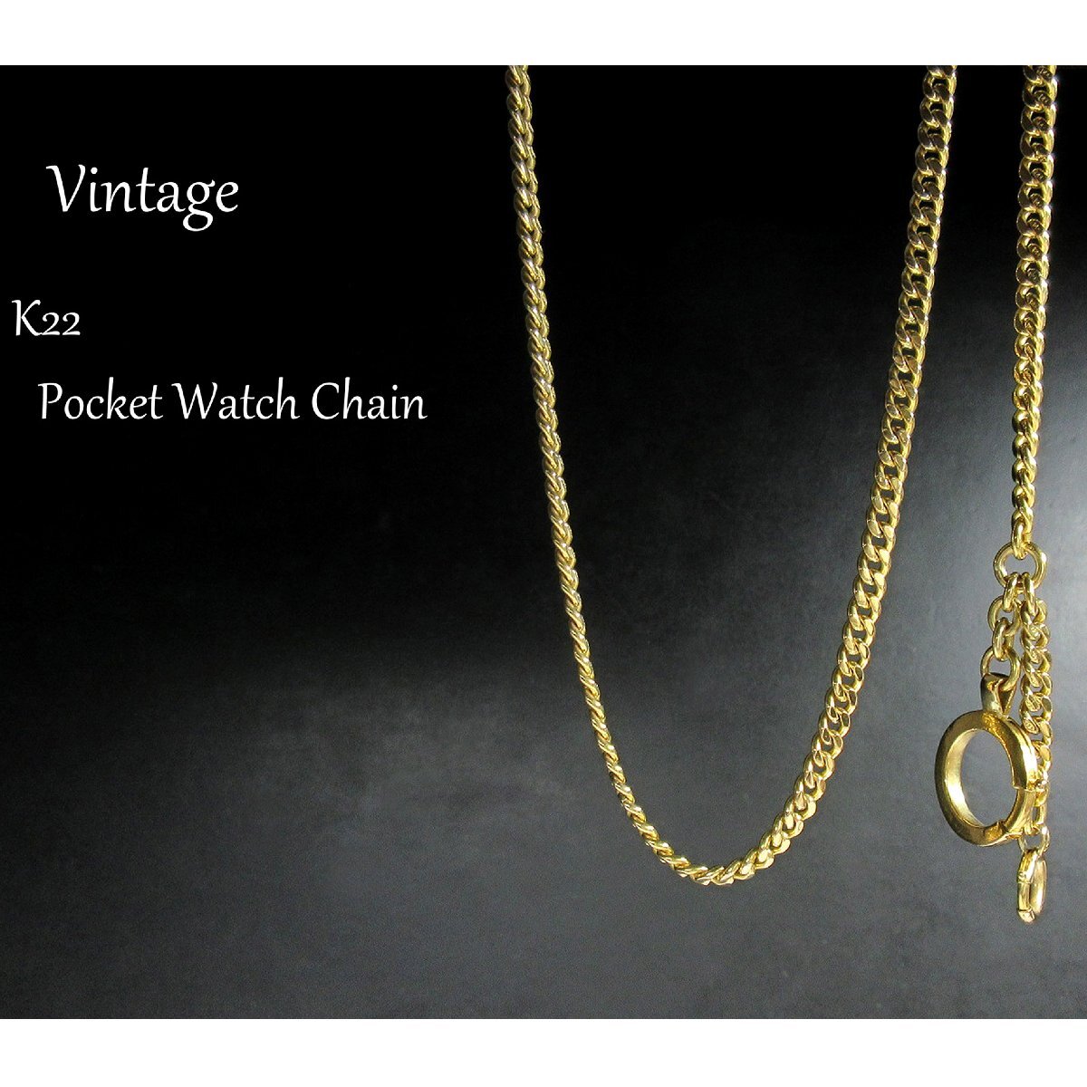 > K22 ヴィンテージ 懐中時計用 喜平2面カット デザイン イエローゴールド チェーン 24g 34.8cm クリップ金具1/引き輪金具2 HKPW13